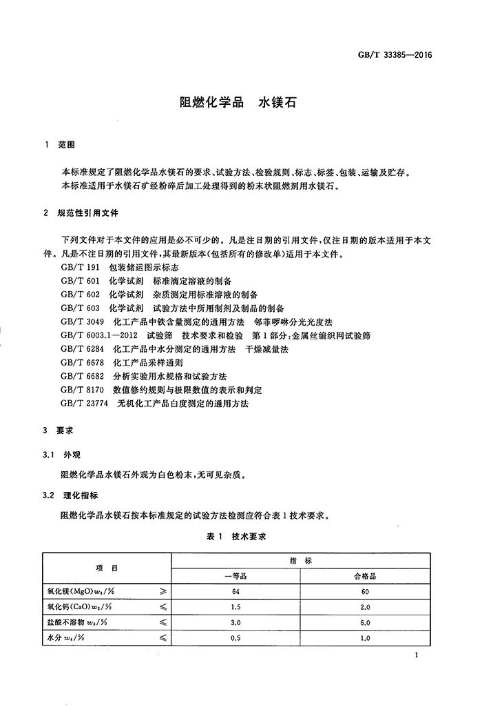 我司參與起草的GB/T33385-2016《阻燃化學品水鎂石》標準 于2017年4月頒布實施